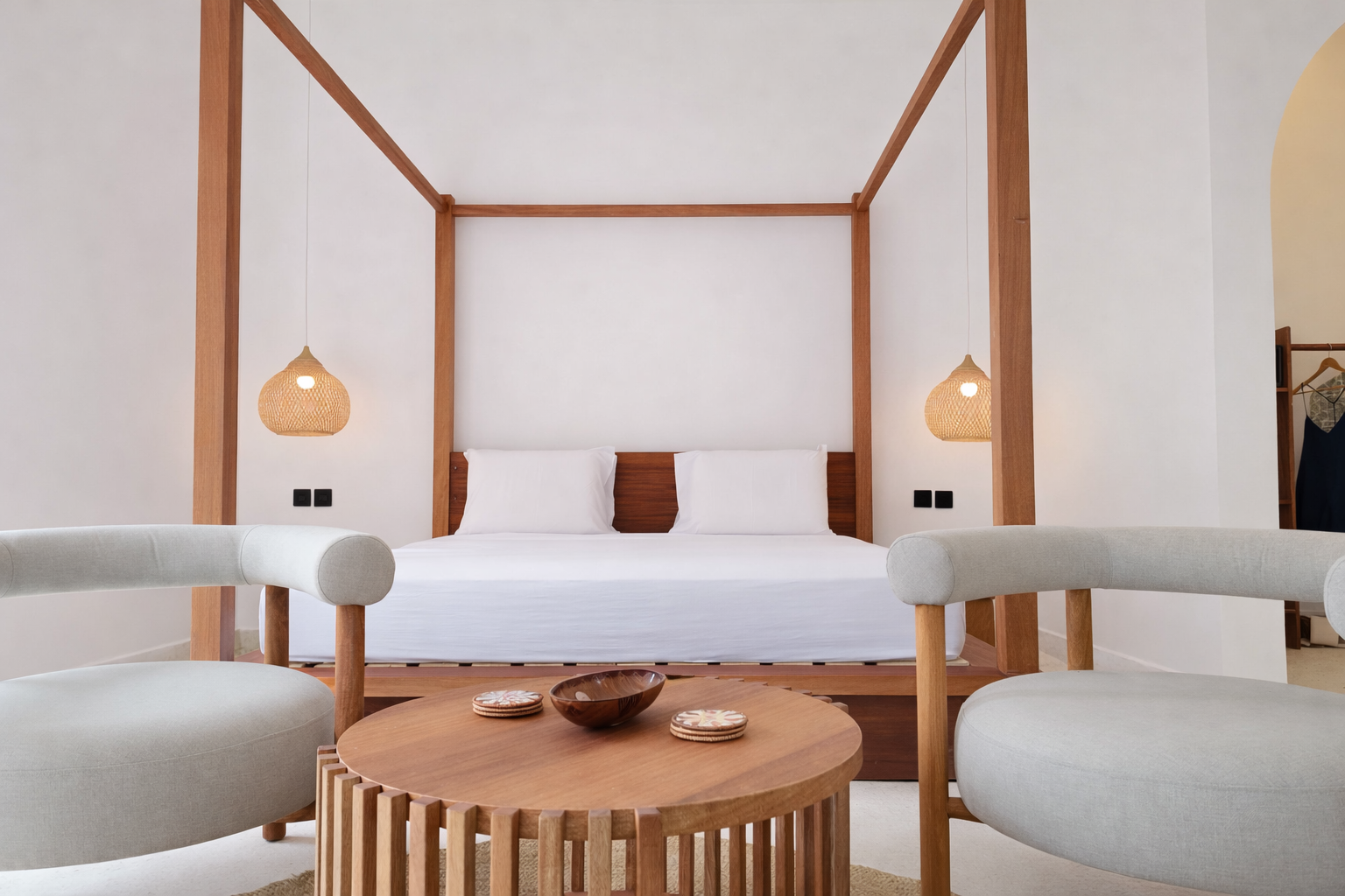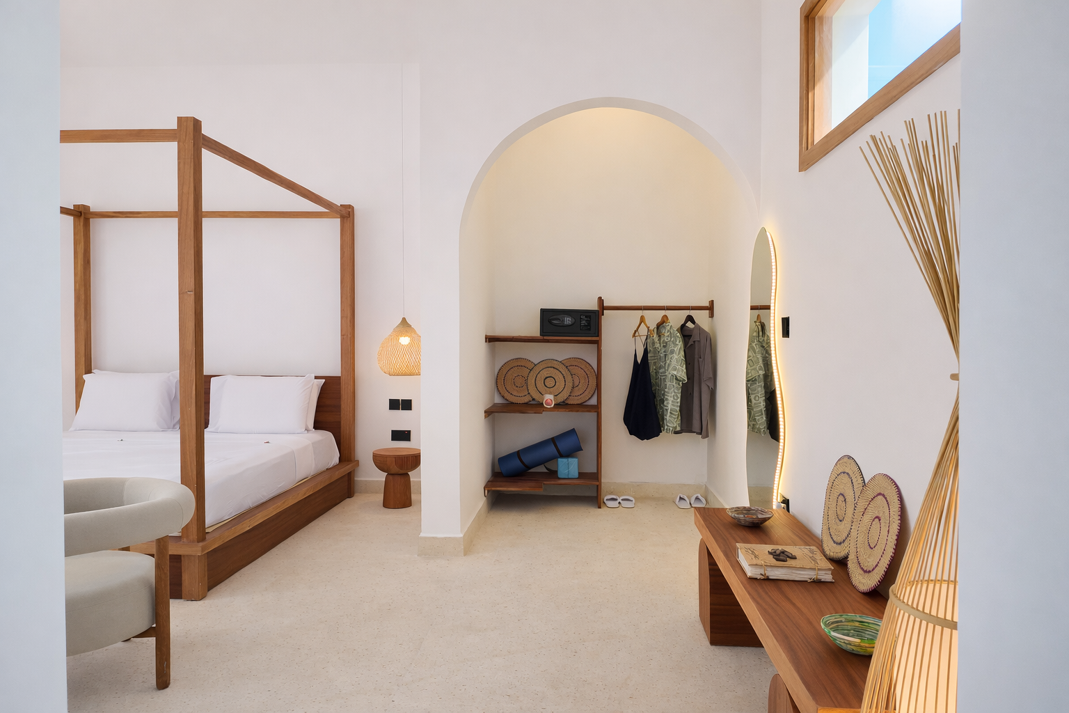 An intimate collection of suites designed for serenity and ease. Clean architecture, natural light, and soft materials create spaces that feel both comfortable and personal. Each room connects quietly with the outdoors and the rhythm of the island.