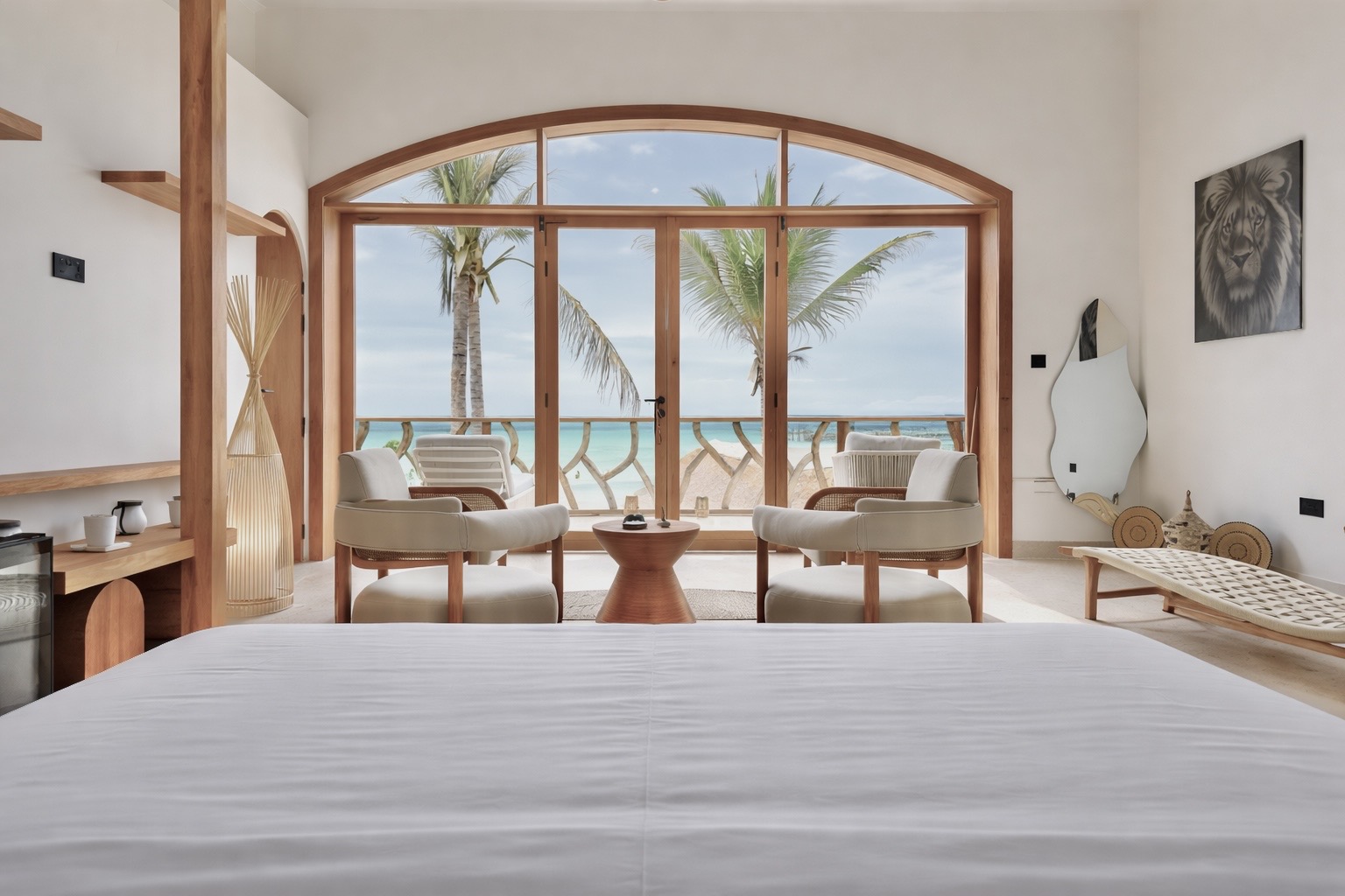 The architecture blends natural materials, soft tones, and handcrafted details inspired by Zanzibar island. Stretching from the woven makuti roof down to furniture and finishes in mango and teak wood. Rooms open toward the sea, gardens, and light; nothing is excessive, nothing is rushed. Comfort comes naturally, without performance or formality.